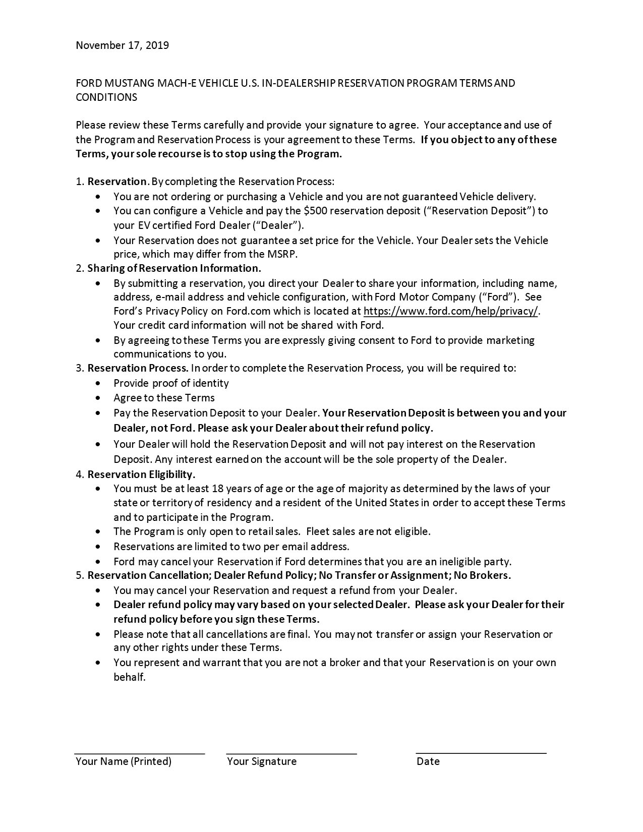 Mach-E Reservation Disclaimer