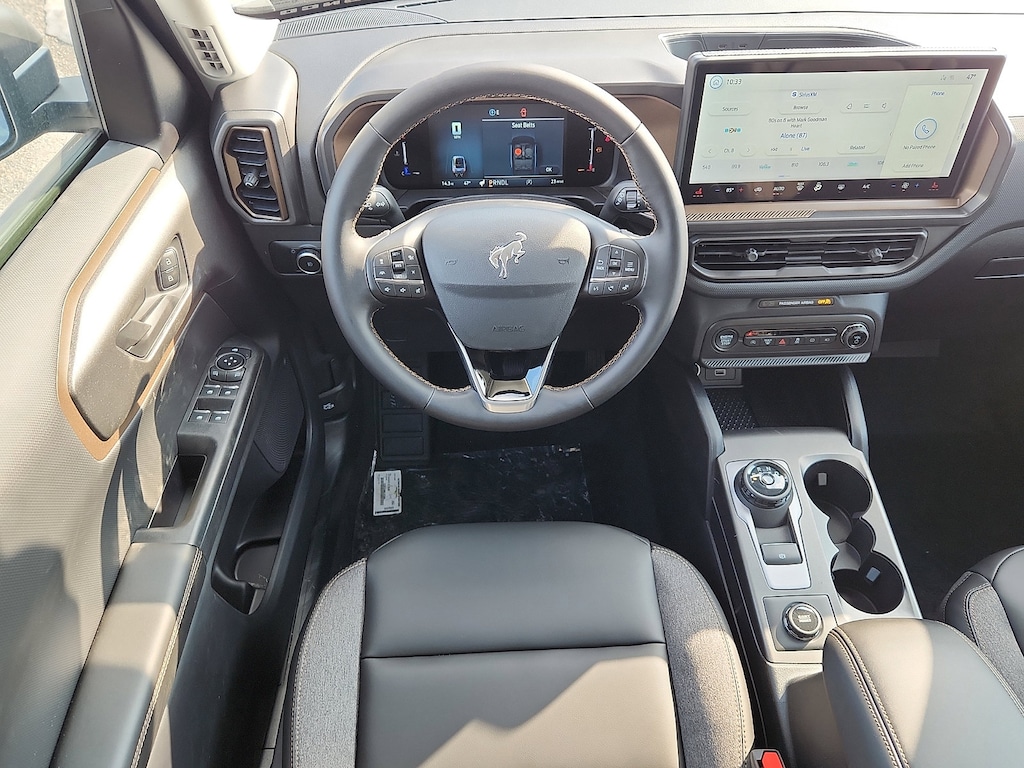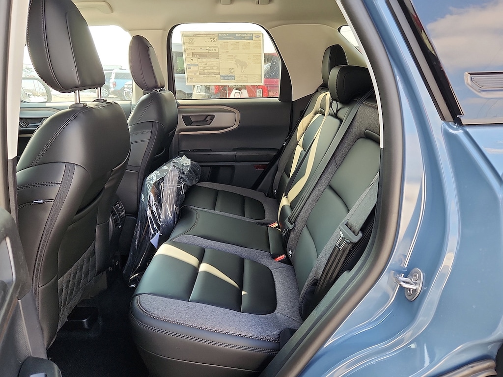 Check out all these great options on this vehicle: Black Diamond Off-Road Package (400W Pro Power Onboard, Auxiliary Switches and Wiring, Front Black Molded-in-Color (MIC) Bumper, Front Brush Guard, and Wheels: 17" Carbonized Gray-Painted Aluminum), Bronze + Black Diamond Off-Road Package (All Weather Floor Liners with Bronze Accents, Body-Color Door Handles, Bronze Badges, Bronze Fender Vent, Cargo Mat with Bronze Accents, Front Driver/Passenger Seat Back Map Pockets, Painted Shadow Black Roof, Premium Trimmed Front Sport Contour Bucket Seats, Premium Wrapped Steering Wheel, and Wheels: 17" Sinister Bronze-Painted Aluminum), Class II Trailer Tow Package with Trailer Sway Control, Convenience Package (Heated 8-Way Power Driver's Seat and LED Fog Lamps), Equipment Group 200A Standard Package (AM/FM Stereo, Cloth with Easy-to-Clean Front Bucket Seats, SiriusXM with 360L, SYNC 4 with Enhanced Voice Recognition, and Wheels: 17" Carbonized Gray Painted Aluminum), Ford Connectivity Package (1-Year Included), Internet access capable: 5G Modem - Ford Connectivity Package, 4-Wheel Disc Brakes, 6 Speakers, ABS brakes, Air Conditioning, Alloy wheels, AM/FM radio: SiriusXM with 360L, Apple CarPlay/Android Auto, Auto High-beam Headlights, Automatic temperature control, Brake assist, Carbon Black Grille with Black Painted BRONCO Lettering, Compass, Delay-off headlights, Driver door bin, Driver vanity mirror, Dual front impact airbags, Dual front side impact airbags, Electronic Stability Control, Emergency communication system: SYNC 4 911 Assist, Exterior Parking Camera Rear, Four wheel independent suspension, Front anti-roll bar, Front Bucket Seats, Front Center Armrest, Front License Plate Bracket, Front reading lights, Fully automatic headlights, Heated door mirrors, Illuminated entry, Knee airbag, Liftgate with Black BRONCO SPORT Lettering, Low tire pressure warning, Occupant sensing airbag, Outside temperature display, Overhead airbag, Overhead console, Panic alarm, Passenger door bin, Passenger vanity mirror, Power door mirrors, Power steering, Power windows, Radio data system, Rear anti-roll bar, Rear Parking Sensors, Rear reading lights, Rear seat center armrest, Rear window defroster, Rear window wiper, Remote keyless entry, Security system, Speed control, Speed-sensing steering, Speed-Sensitive Wipers, Split folding rear seat, Steering wheel mounted audio controls, Tachometer, Telescoping steering wheel, Tilt steering wheel, Traction control, Trip computer, and Variably intermittent wipers.
